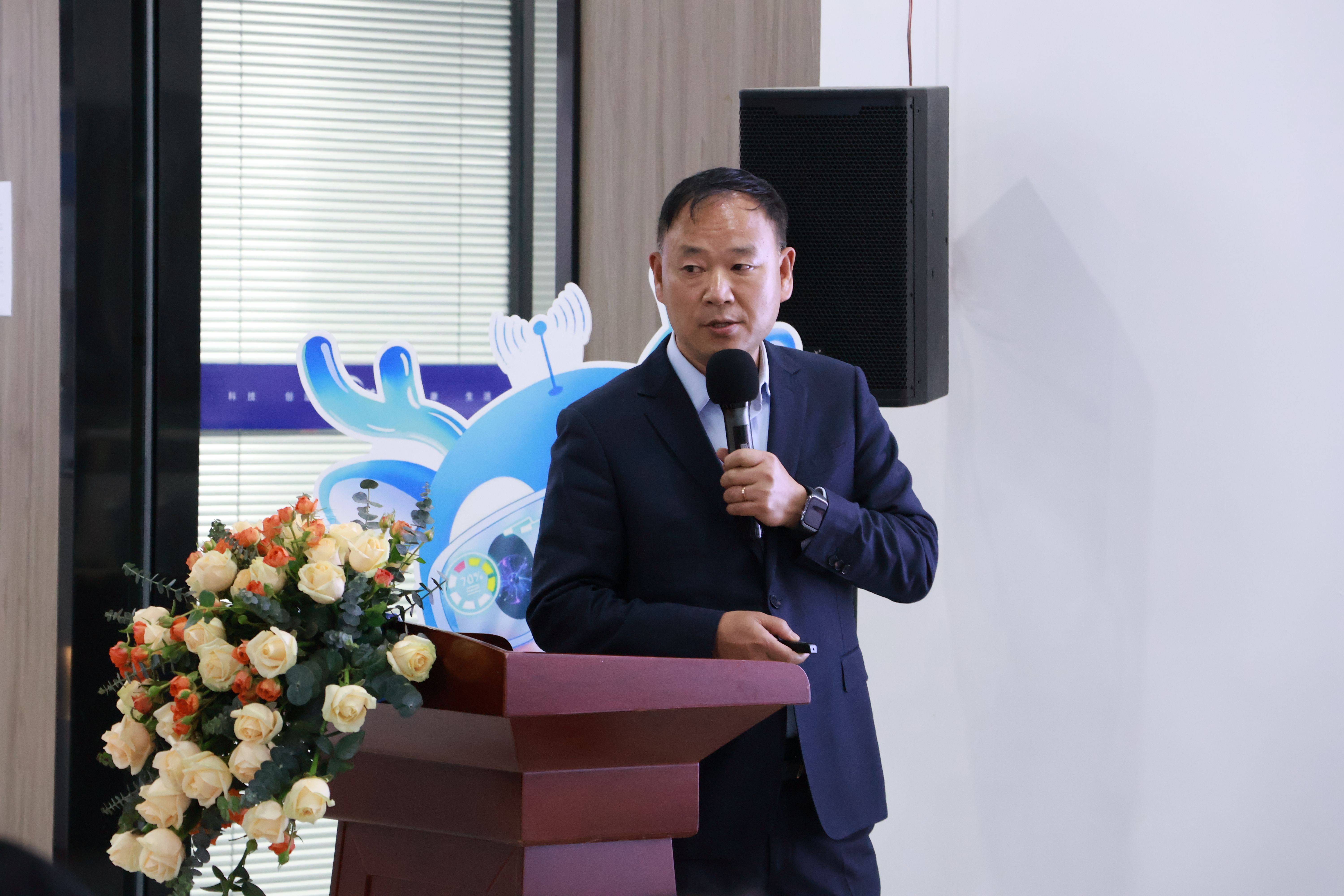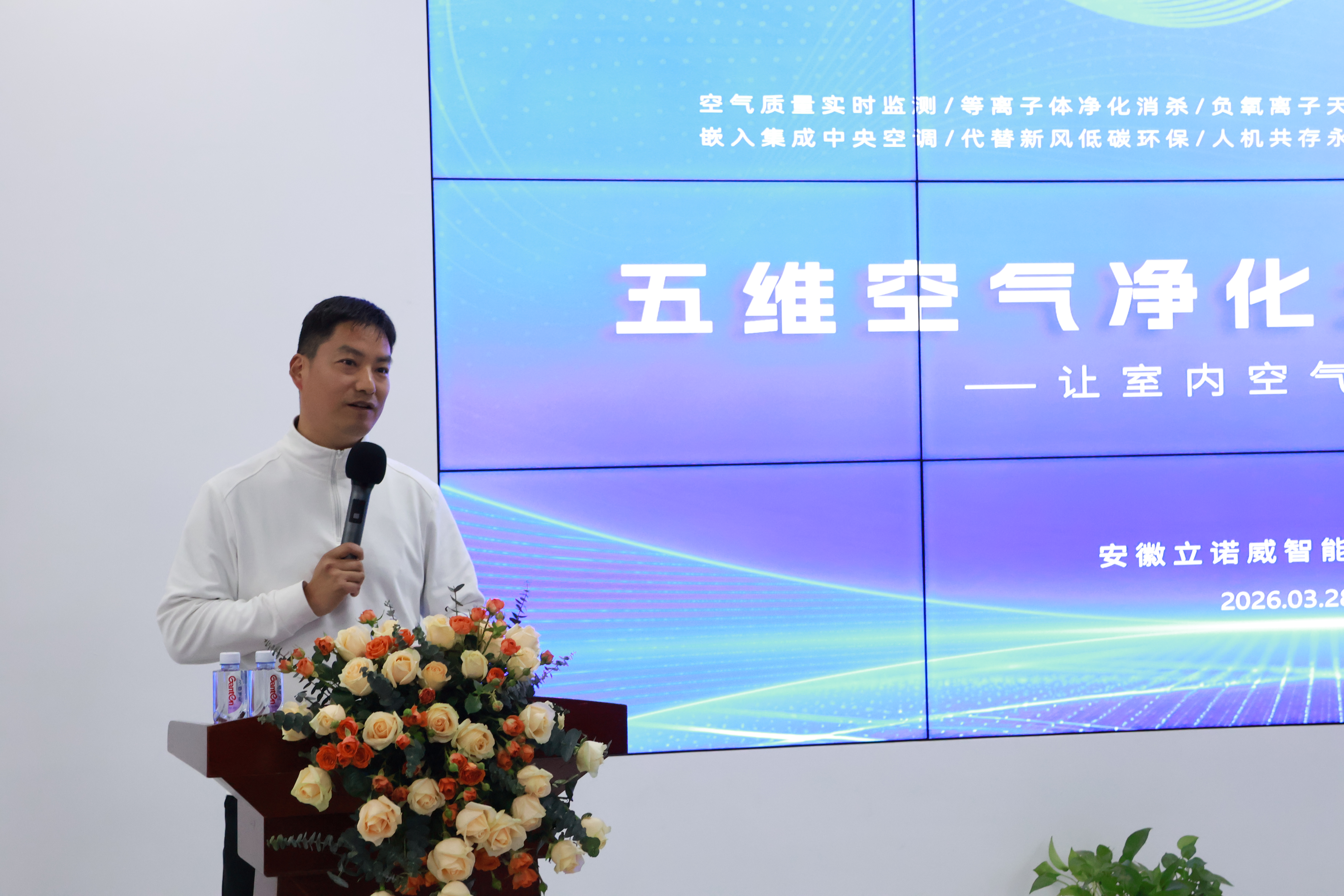 随后,立诺威医疗事业部总监孔德钊对五维空气净化氧吧系统进行了专题分享。他从项目背景、解决方案、核心技术及研发团队、场景应用等方面,全面介绍了室内空气监测净化消毒氧吧智能一体化的解决方案,也让校友们对立诺威的研发实力与行业前景有了更直观、更深入的认识。