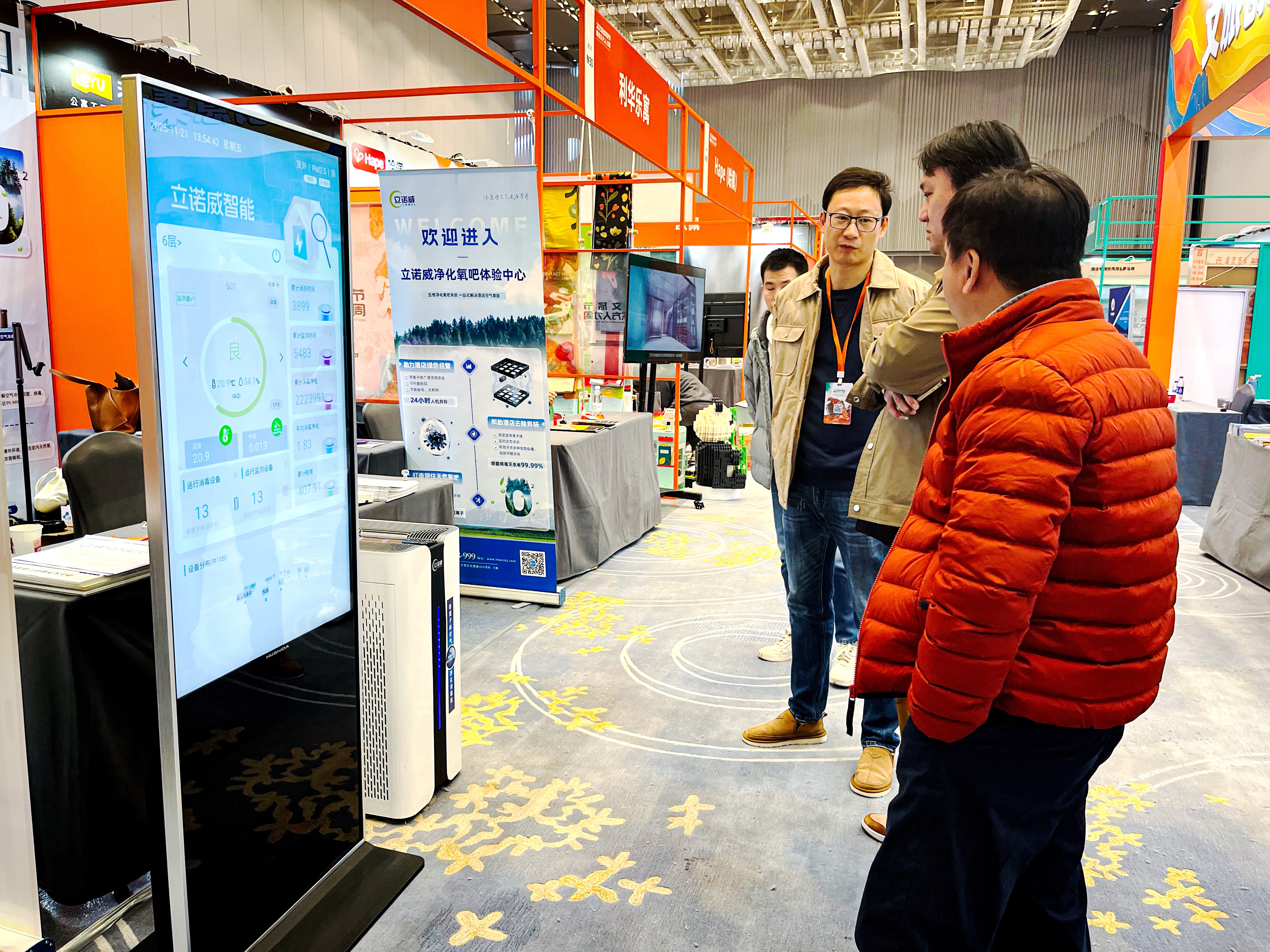 展会现场,立诺威展区呈现了一个完整的酒店室内空气解决方案,涵盖空气监测、等离子体消毒、负氧离子氧吧、天然香薰精油、智能云端等,实现了全流程、智能化的体验。该解决方案不仅展现了科技对服务业的深度赋能,也凸显了立诺威的技术积累与创新实力。