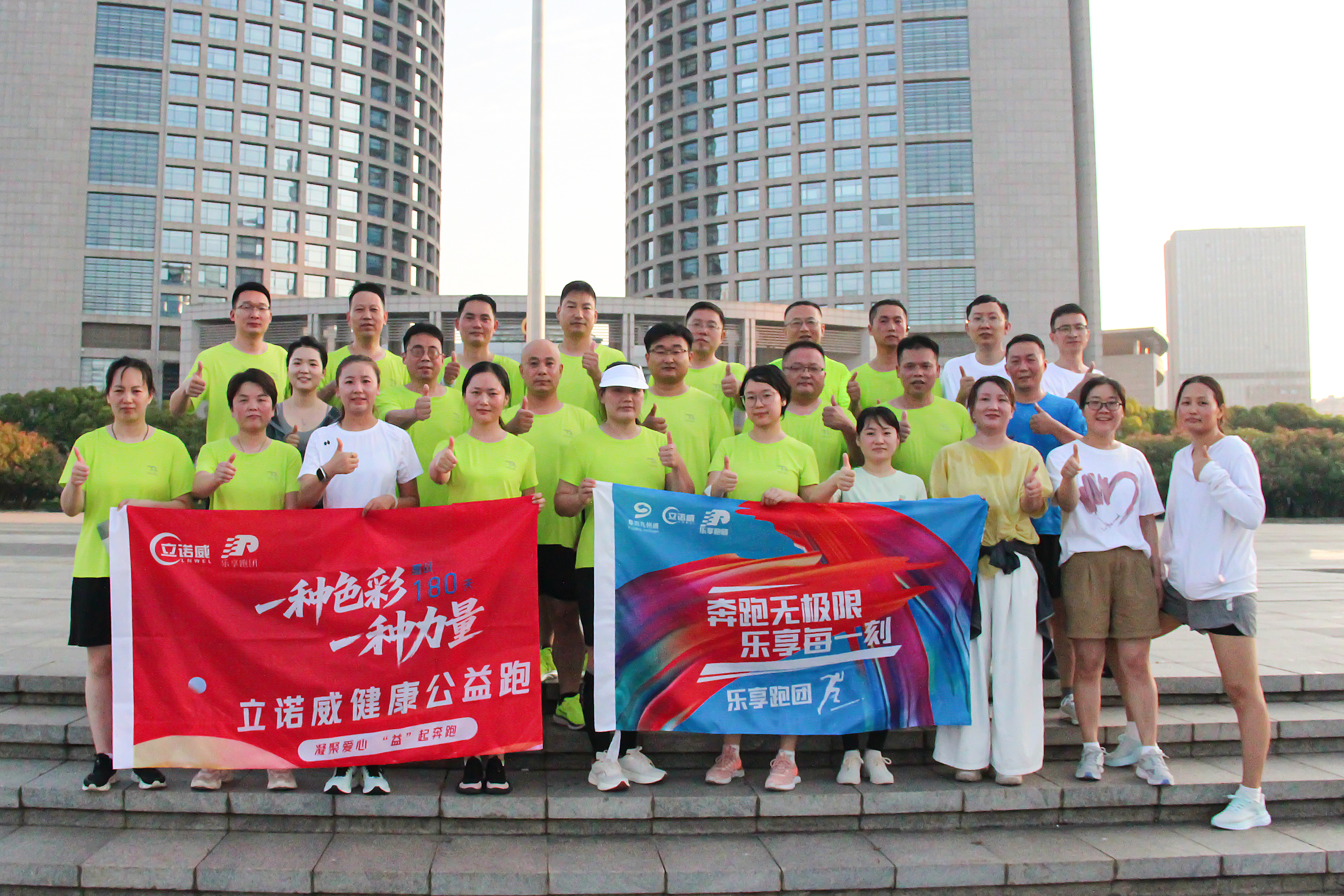 次日清晨,大家齐聚天鹅湖畔,开启了一场热血沸腾的公益跑。每一步的奔跑,不仅是大家对健康生活的追求,更承载着立诺威人回馈社会、践行责任的理念。此次公益跑,立诺威将根据大家的里程数进行公益捐赠,用实际行动传递正能量!