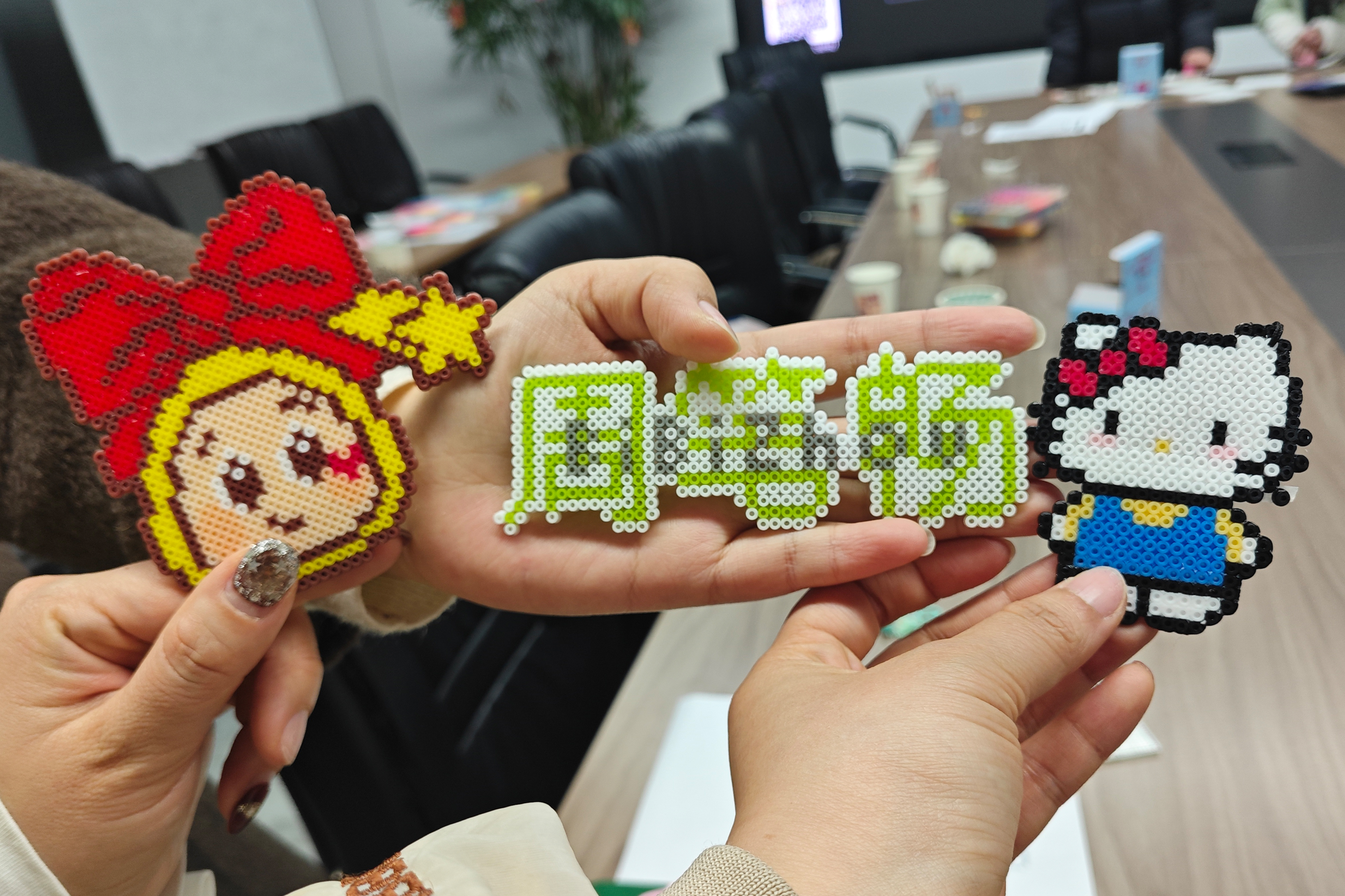 活动现场,治愈观影与暖心茶歇同步开启。大家以色彩为笔,以指尖为媒,精心搭配、耐心创作,将一颗颗小拼豆组合成精致可爱的拼豆手作。专注的神情、灵巧的动作,每个人都沉浸在拼豆手作的创作乐趣中。大家围坐在一起,放松身心、畅聊分享,在光影与手作中卸下疲惫、舒缓压力,感受公司大家庭的温暖与关怀。