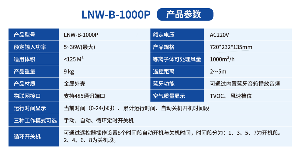 产品可直接安装于墙面上方,安装位置相对灵活,室内装饰效果好,外壳钣金金属材质,外形美观时尚,控制面板滚动显示多种实时监测数据。整机依据空循环动力学设计,一侧出风,一侧进风,在室内形成水平循环流,大大提高了室内净化消毒效率。多种运行模式可选,可远程对设备进行监管和操控,实时数显,智能运行。可连接手机蓝牙,具有蓝牙音频播放功能。